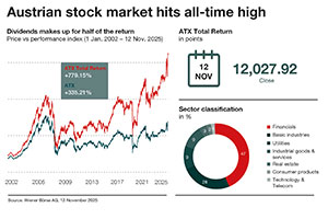 On the following pages you can download printable images about the Vienna Stock Exchange on the topics of the Management Board, info graphics, the company headquarters, trading & indices as well as general stock exchange motifs such as bull & bear and the opening bell for your reporting and use them freely to illustrate your articles, subject to the respective copyright. In addition, you will find our IPO highlights in the prime market and stock exchange debuts in the direct market plus. Permission must be obtained for the use of the Vienna Stock Exchange logo.
