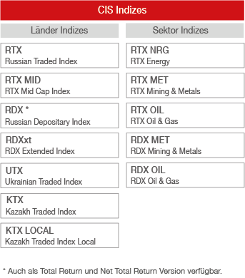 Die Wiener Börse zählt zu den aktivsten Anbietern von Indizes, welche auf Märkte der CIS (ehemalige GUS Staaten) Region basieren.