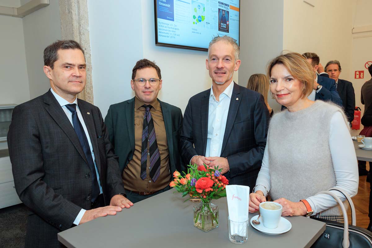Nach einer Begrüßung durch Börse-CEO Christoph Boschan sowie den Vorsitzenden des VÖNIX-Beirates und Generaldirektor der VBV Andreas Zakostelsky stand eine hochkarätig besetzte Paneldiskussion im Mittelpunkt der Veranstaltung. Mit dabei waren Peter Brezinschek, Selbständiger Finanzmarktexperte und ehemaliger Raiffeisen-Chefanalyst, Reinhard Friesenbichler, Geschäftsführer rfu, Monika Köppl-Turyna, Direktorin des Instituts für Wirtschaftsforschung EcoAustria und Helga Kromp-Kolb, Emeritierte Professorin Institut für Meteorologie und Klimatologie Universität für Bodenkultur; Moderation: Julia Resch, Head of Corporate Communications & Marketing, Wiener Börse.